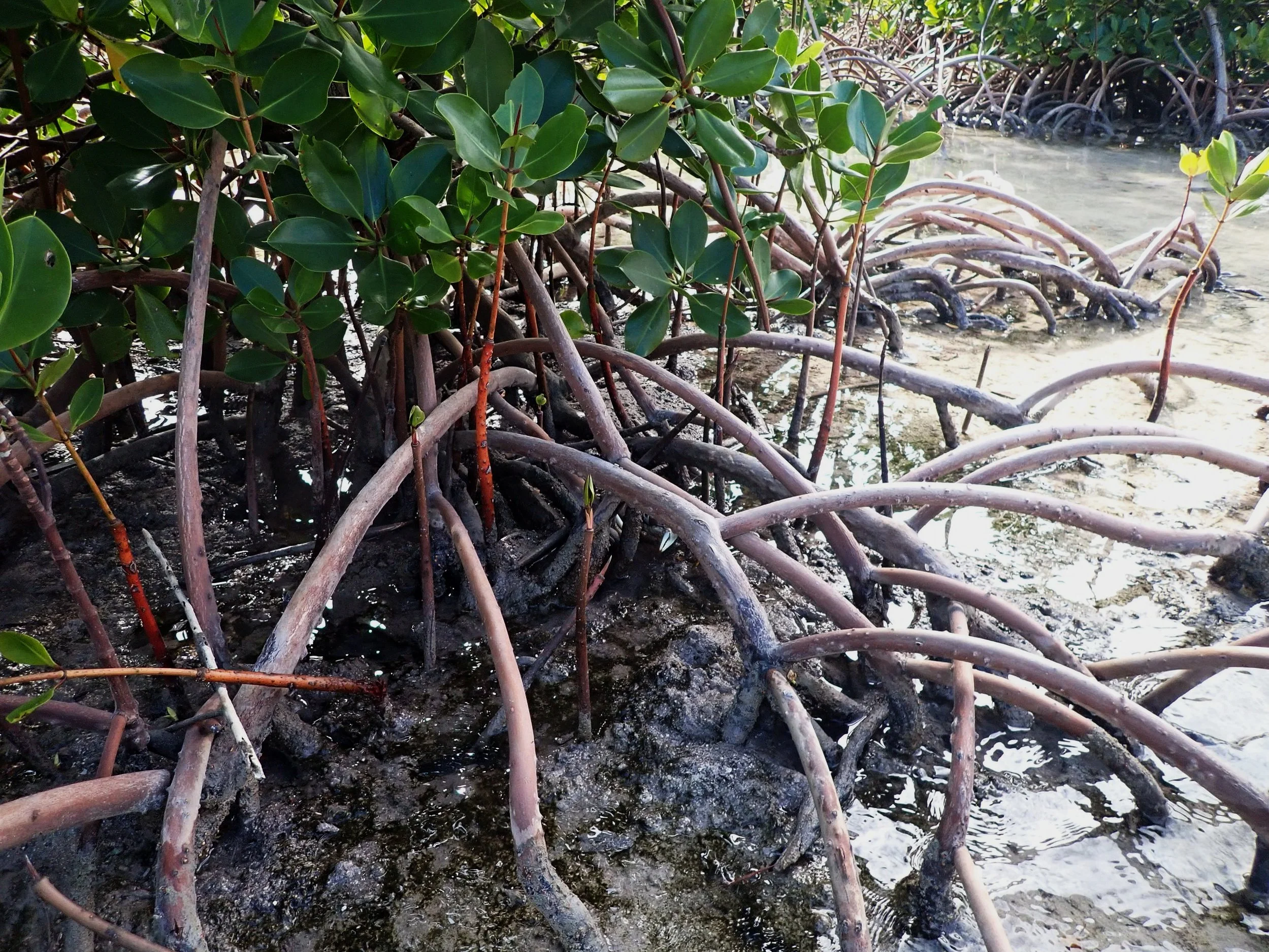 The roots also prevent erosion by absorbing waves, especially during storms.