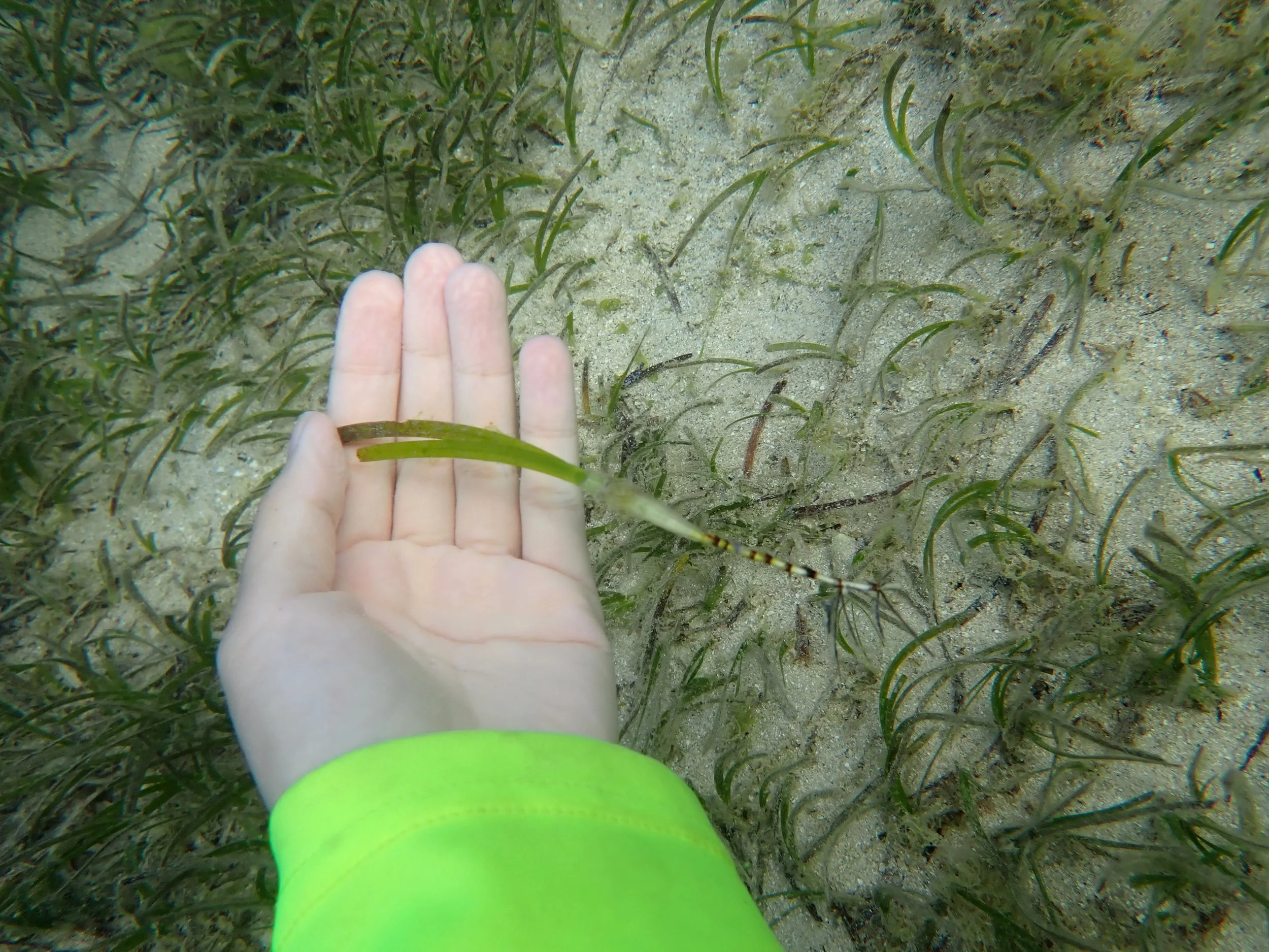 There are many amazing animals hiding in our seagrasses, however, some of them are small, well-camouflaged, and shy! By going slowly and looking closely, you will be better able to spot some of these awesome creatures. Sea creatures can be found on all parts of the seagrass, so be sure to look all around you: on the sediment in between the seagrasses, on the seagrass blades themselves, and hovering just above the seagrass beds.